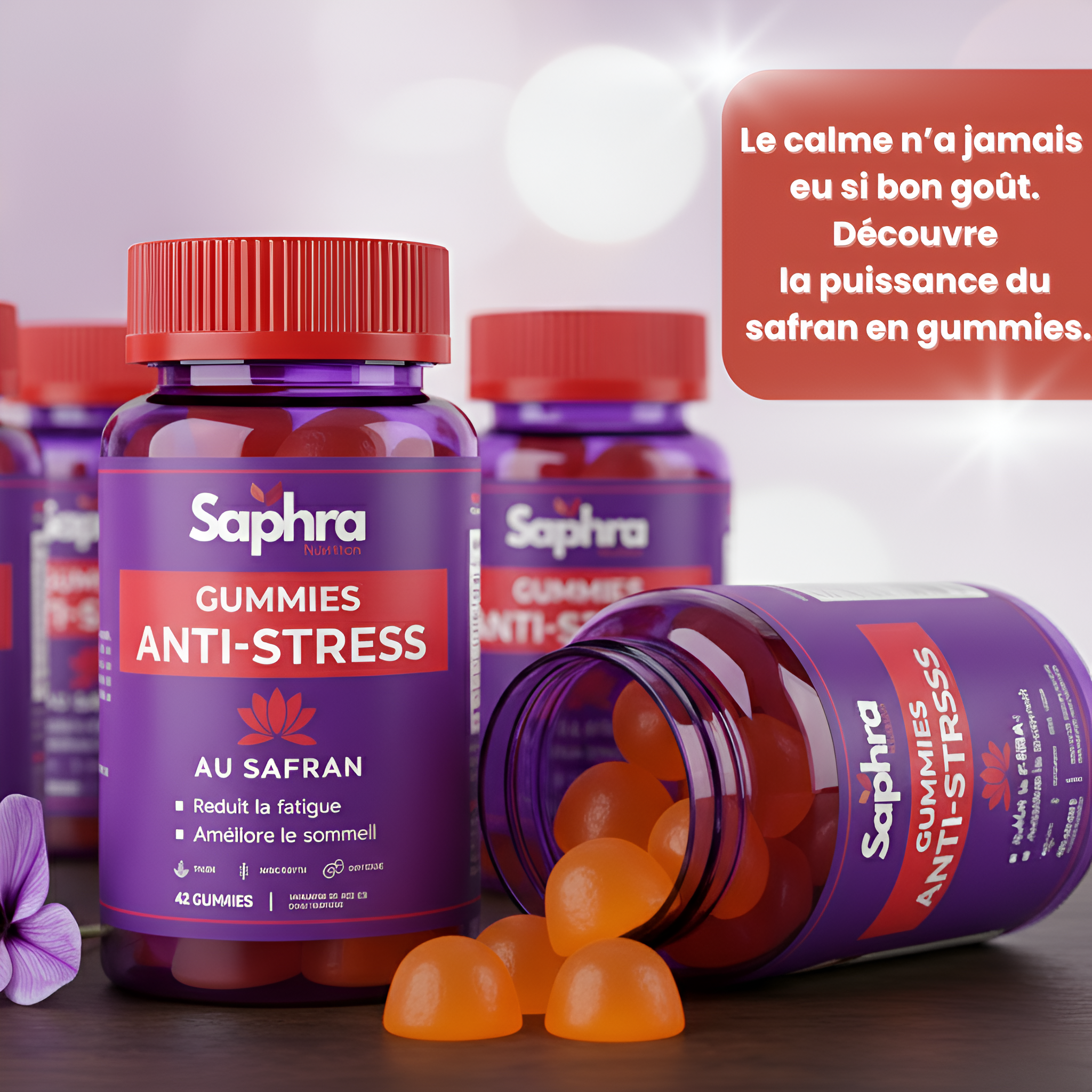 Découvrez nos gummies au safran : une solution naturelle et sans sucre pour réduire le stress, améliorer votre sommeil et retrouver un équilibre émotionnel durable, validée par la science et agréable à déguster au quotidien.